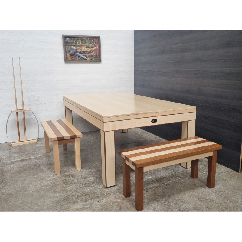 Création d'un nouveau concept : voici le 1er billard table moderne en ERABLE MASSIF avec incrustation de noyer massif .